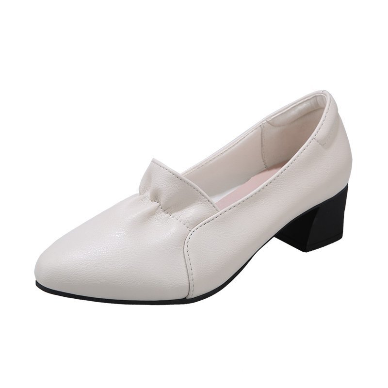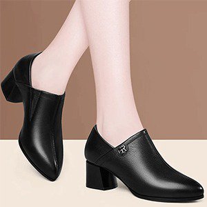 حذاء جلدي نسائي مع الكعب السميك